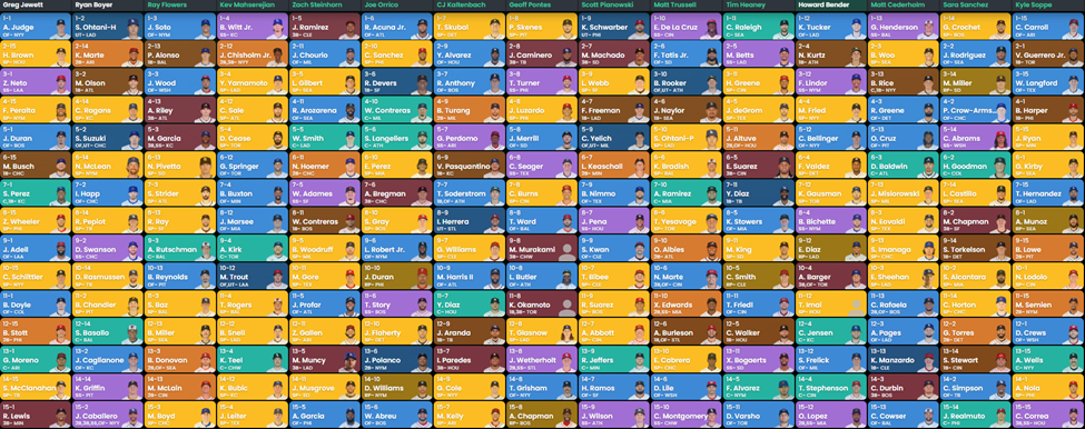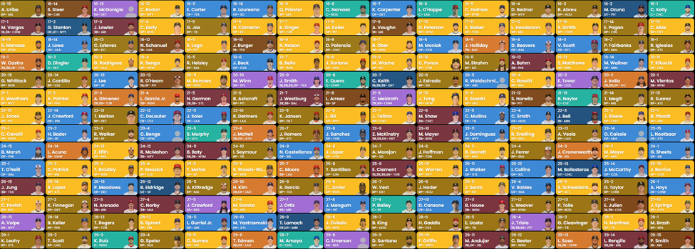 Pitchers: Nick Pivetta (6), Spencer Strider (7), Robbie Ray (8), Shane Baz (11), Bryce Miller (12), Matthew Boyd (15), Carlos Estevez* (18), Grayson Rodriguez (19), Troy Melton (22)